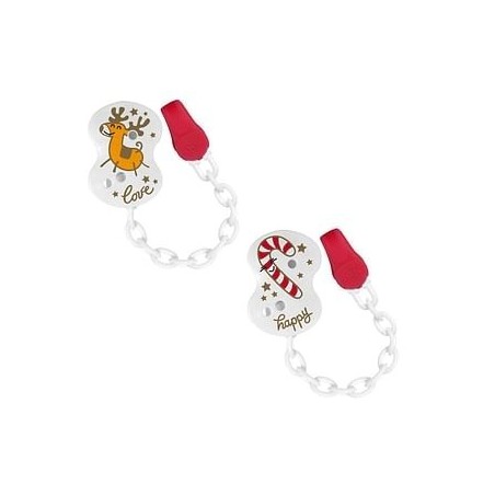 Chicco Clip con Catenella è un comodo ausilio per fissare il ciuccio al vestitino o body del bambino in modo tale che non cada o comunque in modo da averlo sempre a portata di mano.