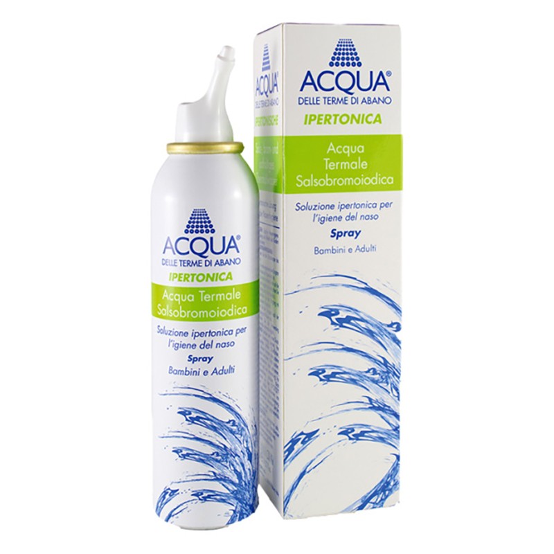 Spray con acqua termale in soluzione ipertonica utile sia per adulti che bambini per l'igiene del naso.
