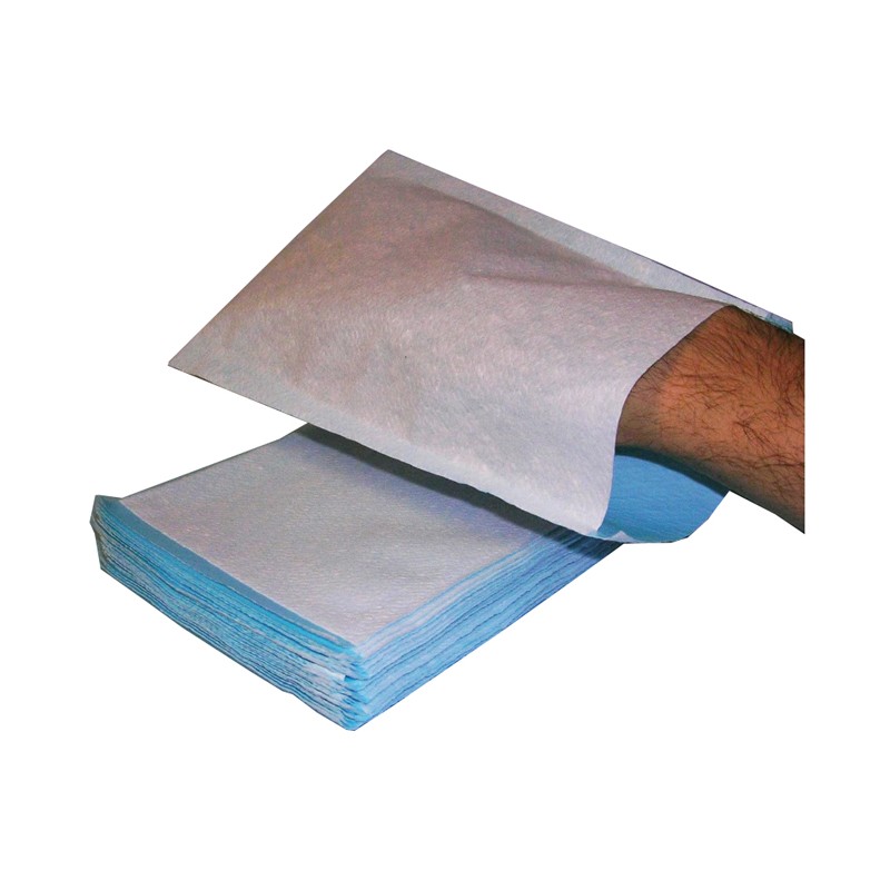 Esterno in carta Airlaid: 50 g/m2. Interno in PE blu. Adesivo: a base d’acqua.