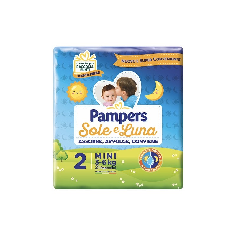 Pampers Sole e Luna Mini, 21 Pannolini, Taglia 2 (3-6 kg).