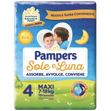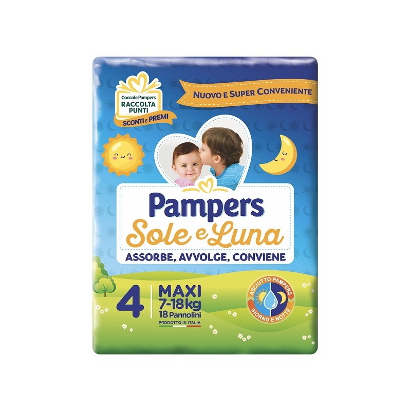 Pampers Sole e Luna Maxi, 18 Pannolini, Taglia 4 (7-18 kg)