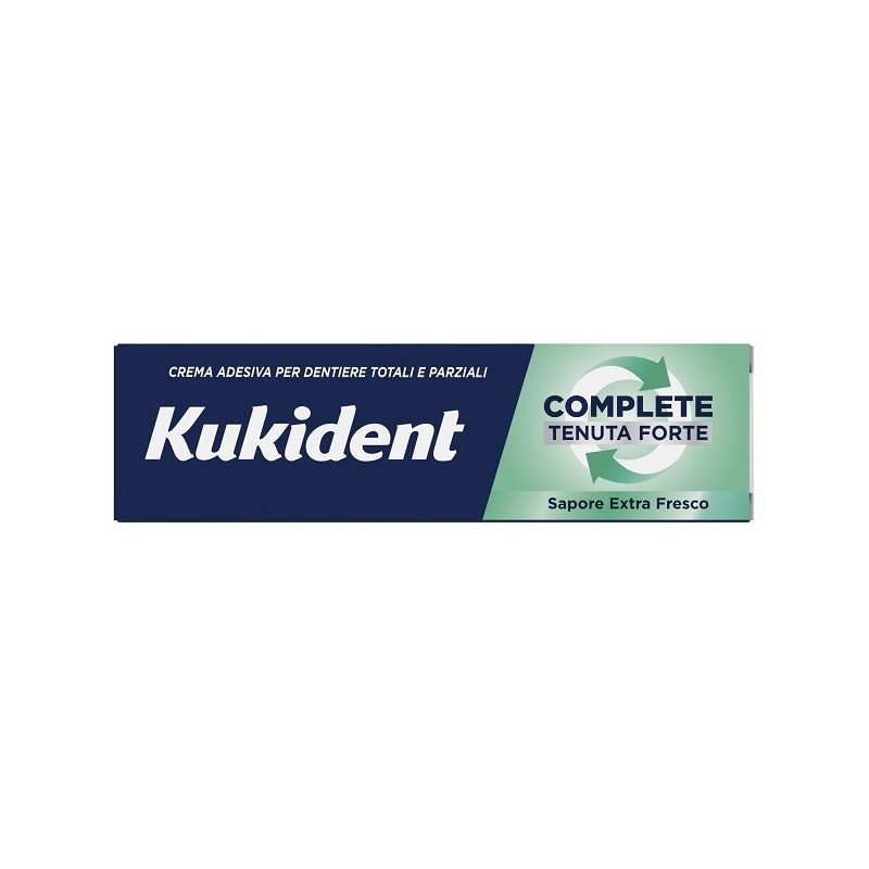 Kukident Complete Extra Fresco 47g è una crema adesiva per dentiere che offre tenuta forte quotidiana, protezione contro le infiltrazioni di cibo e una freschezza mentolata più intensa rispetto alla versione standard.