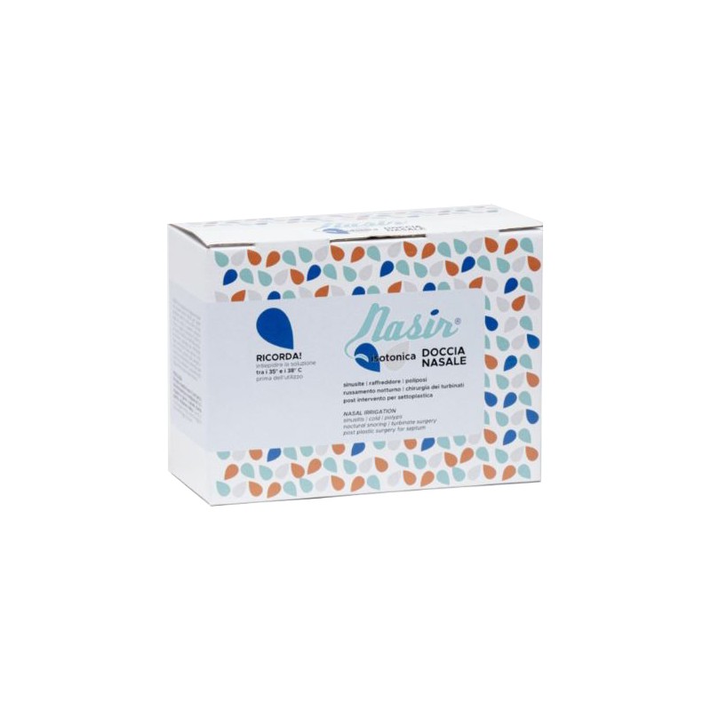 Dispositivo medico CE 0476 di irrigazione nasale, indicato per l’igiene quotidiana tramite la doccia delle mucose nasali, allo scopo di prevenire ostruzioni dovute a ristagno di secrezioni di catarro o per coloro che soffrono di difficoltà respiratorie dovute a patologie quali: raffreddore, tosse, sinusiti, decorsi post-operatori, otite, asma, bronchiti, poliposi nasali, allergeni o causate da contaminazioni ambientali quali polveri, fumo o esalazioni. Coadiuvante nella terapia dell’ostruzione nasale notturna.