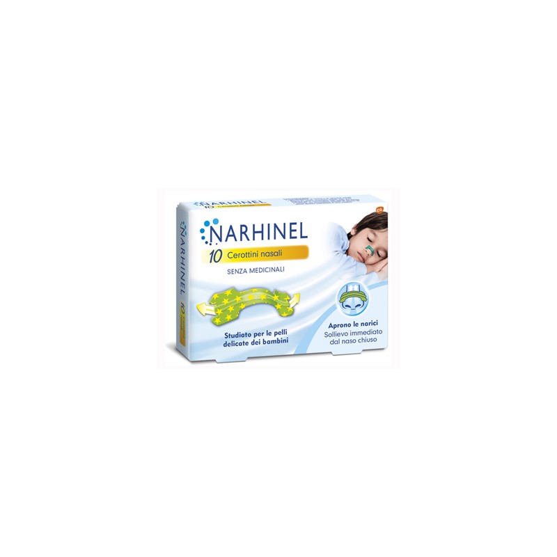 I cerottini nasali per bambini Narhinel forniscono sollievo immediato dalla congestione nasale e dal naso chiuso, causati da raffreddore o allergie, senza utilizzo di medicinali. Prodotti da Glaxosmithkline C. Health.
