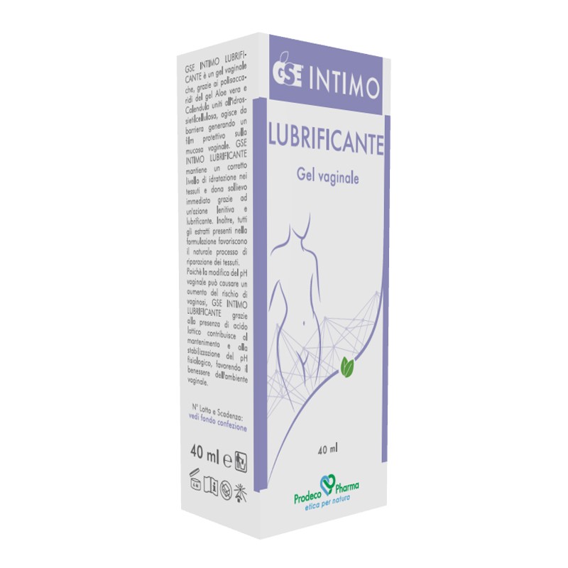 GSE INTIMO LUBRIFICANTE è un gel vaginale utile nella prevenzione e nel trattamento della secchezza vaginale di varia origine e natura che, grazie ai polisaccaridi del gel di Aloe vera e alla Calendula uniti all’Idrossietilcellulosa, agisce da barriera generando un film protettivo sulla mucosa vaginale. GSE INTIMO LUBRIFICANTE mantiene un corretto livello di idratazione nei tessuti e dona sollievo immediato grazie ad un’azione lenitiva e lubrificante. Poiché la modifica del pH vaginale può causare un aumento del rischio di vaginosi, GSE INTIMO LUBRIFICANTE, grazie alla presenza di Acido lattico, contribuisce al mantenimento e alla stabilizzazione del pH fisiologico; la presenza di Estratto di semi di pompelmo (GSE) aiuta ad evitare la crescita microbica, favorendo il benessere dell’ambiente vaginale.
