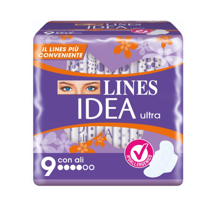 Gli assorbenti Lines Idea offrono la protezione e il comfort lines e si prendono cura della pelle offrendo un'ottima sensazione di morbidezza.