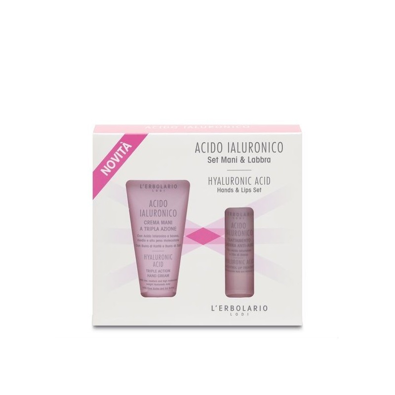 L'erbolario Lodi Acido Ialuronico Set Mani & Labbra è un kit contenente una crema per le mani a tripla azione e un trattamento per le labbra anti-age.