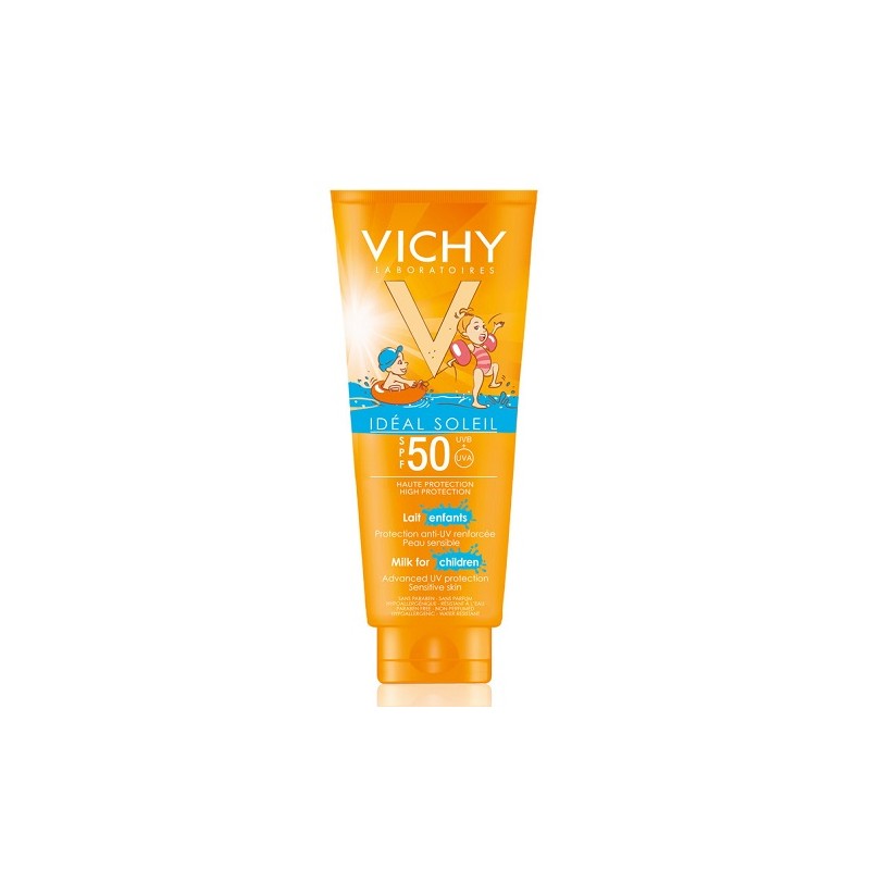 Vichy Ideal Soleil è la fa parte della linea di prodotti ad altissima protezione nei confronti sia dei raggi UVB e UVA, con tecnologia Meroxyl Xl in aggiunta a minerali protegge dai danni cutanei indicato per la pelle delicata e sensibile dei bambini è Resistente all'acqua.