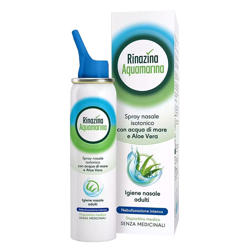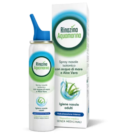 Spray nasale isotonico per adulti con acqua di mare, Aloe vera nota per le sue proprietà emollienti e idratanti e senza medicinali. Lava via le impurità, deterge le cavità nasali, idrata e lenisce le mucose irritate.