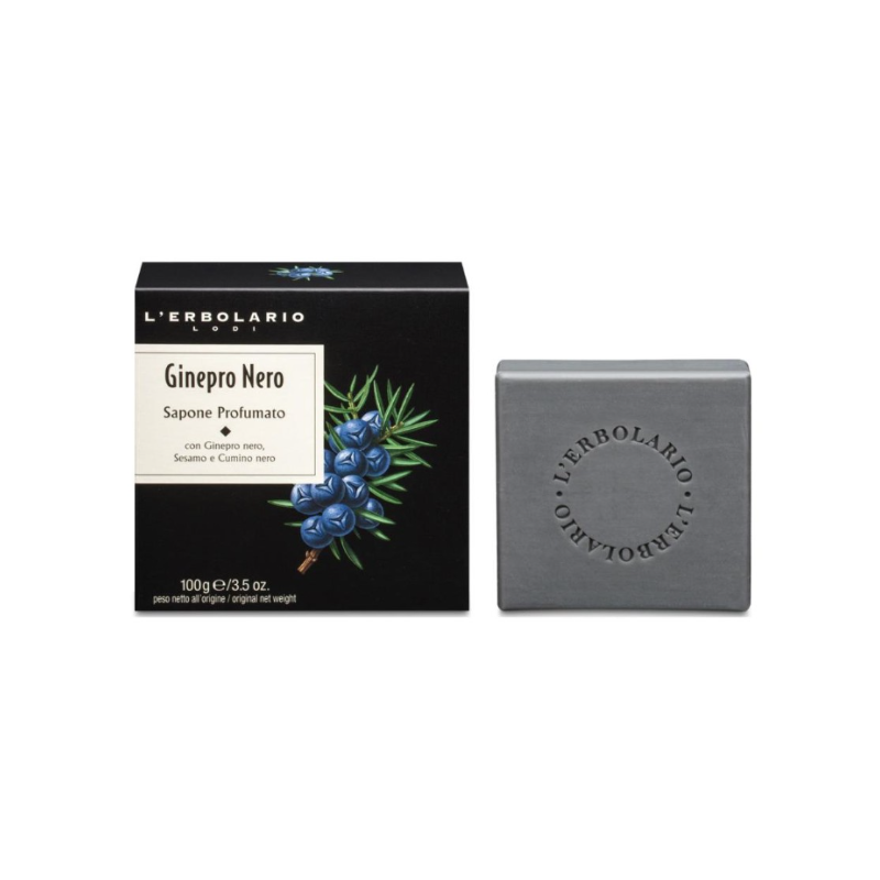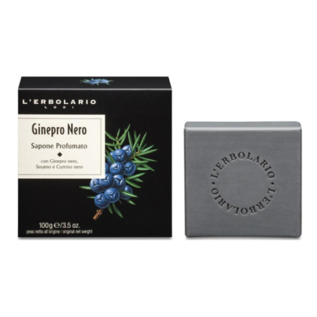 Panetto di sapone profumato dal profumo energizzante. Con Ginepro nero, Sesamo e Cumino nero. Fragranza agrumata, legnosa. Prodotto da L'erbolario.