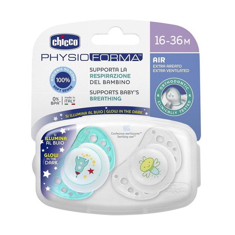 Chicco Succhietto Air Lumi In Silicone 16-36 Mesi 2 Pezzi