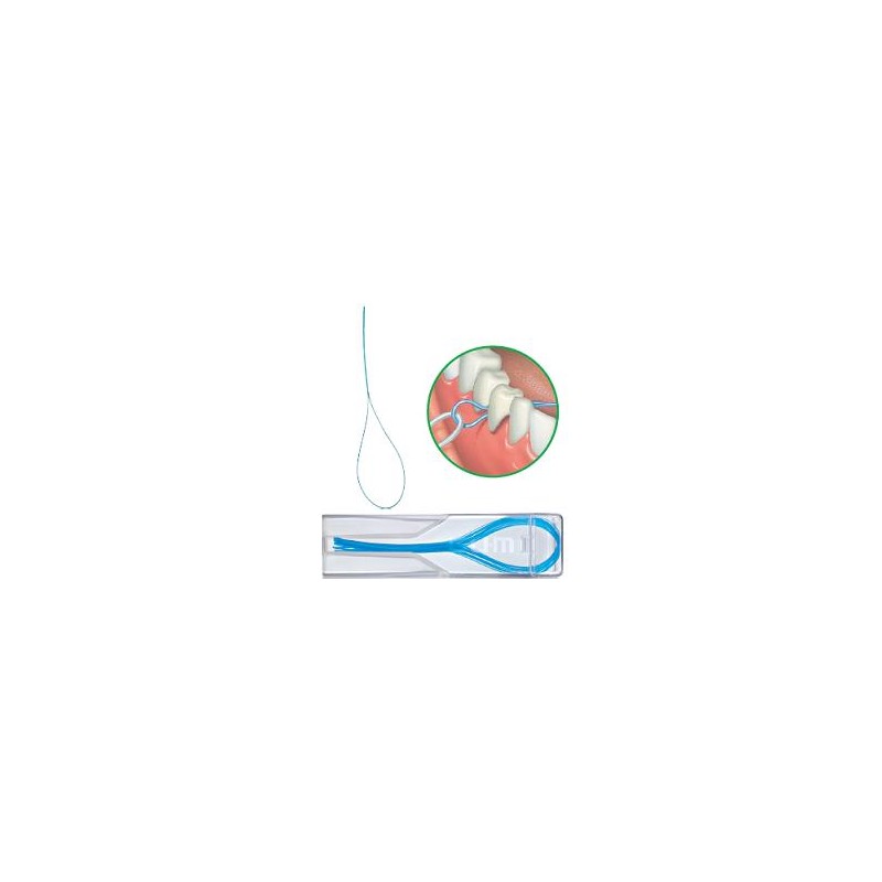 Aghi passafilo. Passante in nylon che aiuta i pazienti ad inserire il filo attraverso gli spazi difficili da raggiungere; sotto i ponti, tra le corone e attorno ad apparecchi ortodontici ed impianti.
