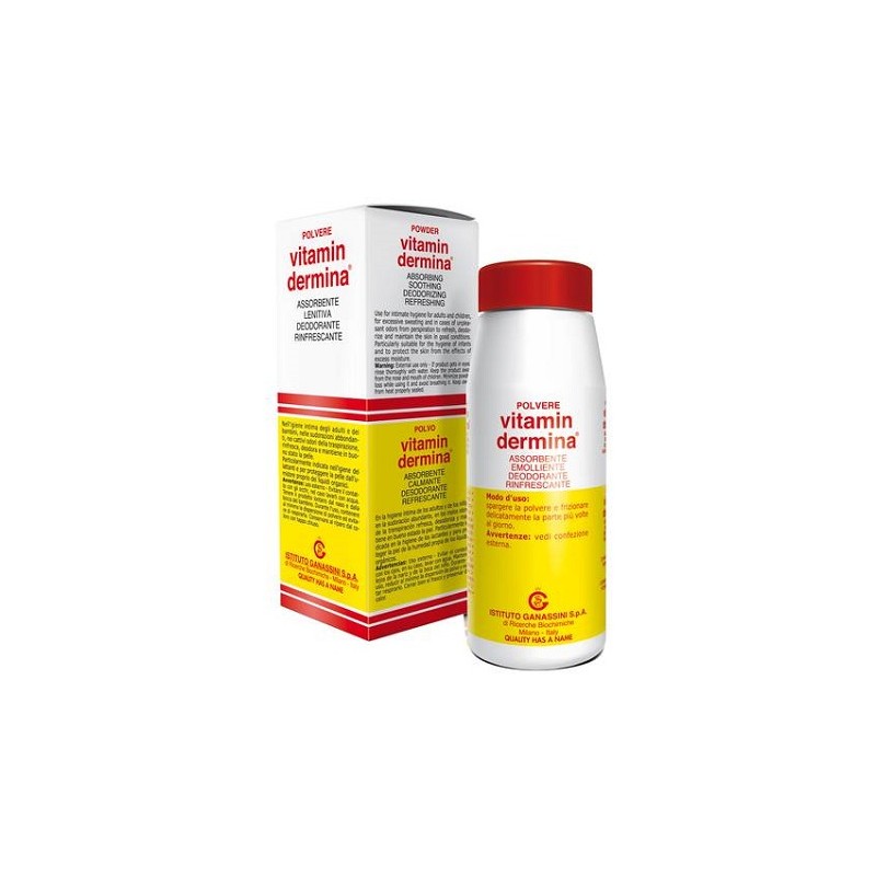 Polvere Vitamindermina è la polvere talco ad azione rinfrescante utile per tutta la famiglia in caso di abbondanti sudorazioni e comunque per mantenere la pelle in buono stato e deodorarla.