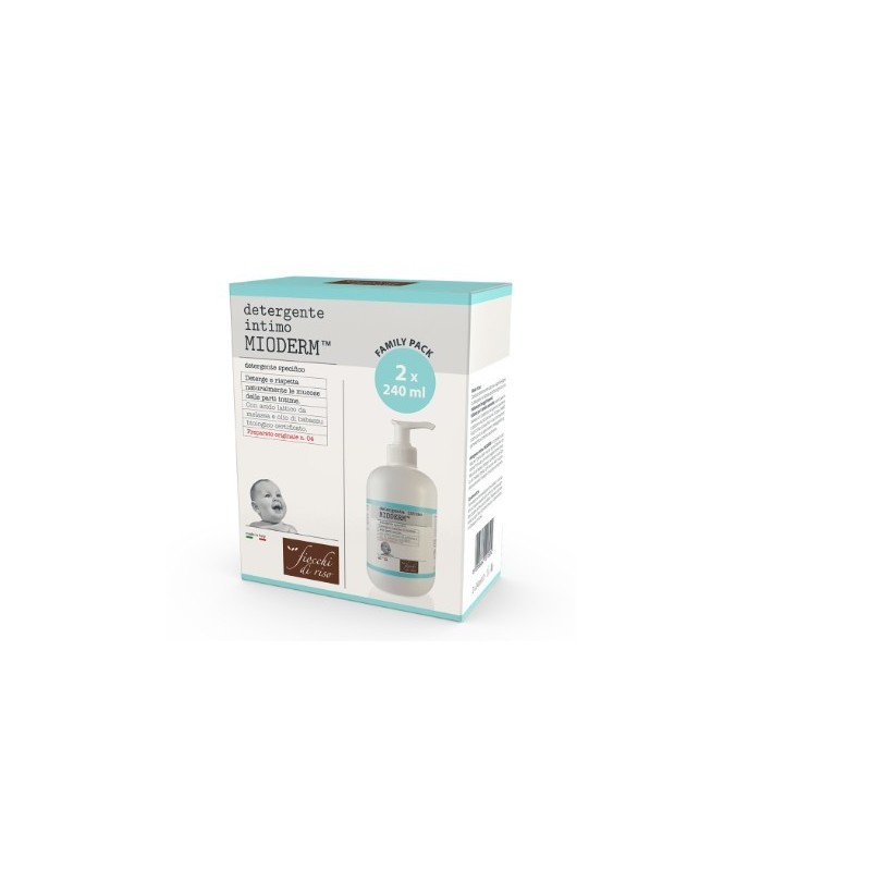 Fiocchi Di Riso Detergente Intimo Mioderm Family Pack 2x 240 ml confezione risparmio con due flaconi di detergente intimo Mioderm per la cura delle zone intime dei neonati e dei bambini, ma anche degli adulti rispettando il pH naturale.