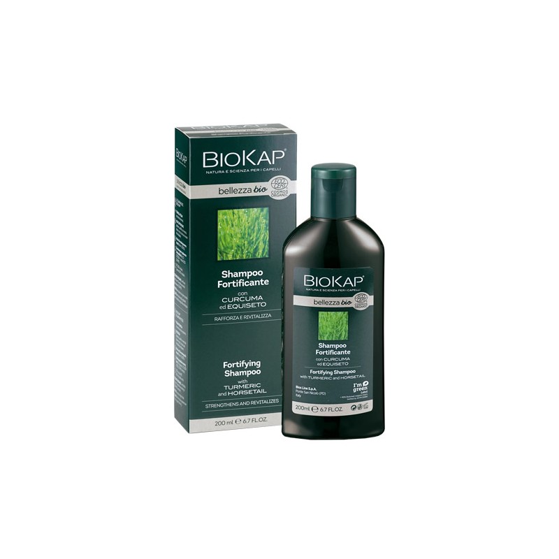 Lo Shampoo Fortificante BioKap Bellezza bio rivitalizza i capelli. La sua formula contiene uno speciale attivo, a base di estratto di curcuma ed equiseto, ricco in silicio, che rinvigorisce e rafforza i capelli, donando loro un aspetto più corposo. I tensioattivi vegetali da cocco, detergono in maniera delicata rispettando l'equilibrio del cuoio capelluto.