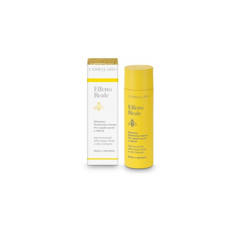 L'erbolario Lodi Effetto Reale è uno shampoo nutrimento intenso per capelli secchi e sfibrati. Agli aminoacidi della Pappa Reale e alla Castagna. Nutre e Ristruttura. Prodotto da L'erbolario.