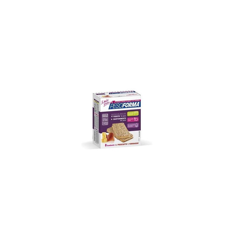 Si tratta di due croccanti craquotte di grano saraceno con al centro una crema al prosciutto crudo e formaggio emmenthal . Con due Sandwich Pesoforma ecco pronto un pasto equilibrato e completo, con 12 vitamine, 11 minerali e 210 kcal, ovvero la giusta proporzione di carboidrati e grassi ed il 26 % di energia in proteine.