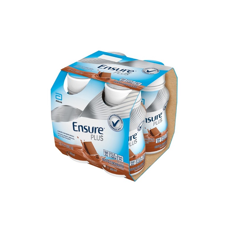 Ensure Plus Cioccolato è un alimento a fini medici speciali per aiutare nella dieta. Prodotto da Abbott.