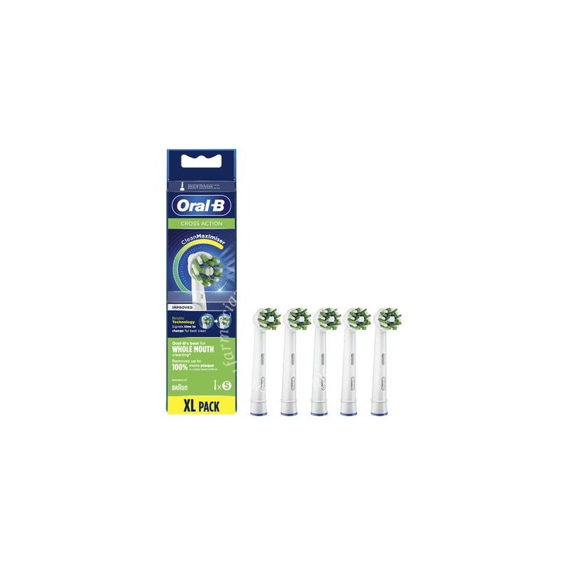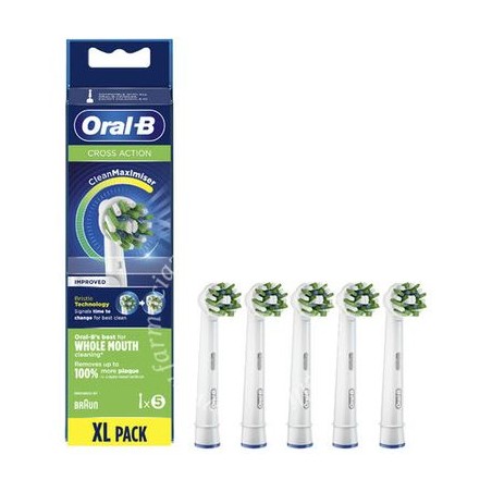 Oral-B EB50 CrossAction 5 pezzi sono testine di ricambio originali con setole inclinate a 16°, progettate per garantire una rimozione profonda della placca anche negli spazi interdentali.