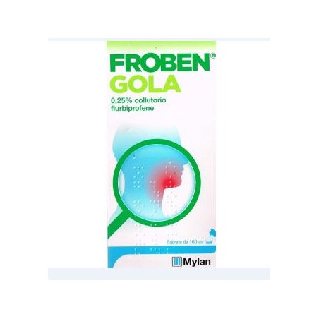 Precauzioni di carattere generale Gli effetti indesiderati possono essere minimizzati con l’uso della più bassa dose efficace per la più breve durata possibile di trattamento che occorre per controllare i sintomi (vedere paragrafo 4.2 e i paragrafi sottostanti sui rischi gastrointestinali e cardiovascolari). Uso in pazienti anziani I pazienti anziani hanno una aumentata frequenza di reazioni avverse ai FANS, specialmente emorragia gastrointestinale e perforazione, che possono essere fatali. Effetti Gastrointestinali Flurbiprofene deve essere somministrato con cautela a pazienti con anamnesi di ulcera peptica e altre malattie gastrointestinali poiché tali condizioni possono essere riacutizzate. Emorragia gastrointestinale, ulcera o perforazione sono stati riportati con tutti i FANS in qualsiasi momento del trattamento. Questi eventi avversi possono essere fatali e possono verificarsi con o senza sintomi di preavviso oppure in caso di precedente storia di gravi eventi gastrointestinali. Il rischio di emorragia gastrointestinale, ulcera o perforazione è più alto all’aumentare del dosaggio di flurbiprofene in pazienti con una storia di ulcera, in particolare se complicata da emorragia e perforazione e negli anziani. Questi pazienti devono iniziare il trattamento con la più bassa dose disponibile. L’uso concomitante di agenti protettori (misoprostolo o inibitori della pompa protonica) deve essere considerato per questi pazienti e anche per pazienti che assumono basse dosi di aspirina o altri farmaci che possono aumentare il rischio di eventi gastrointestinali (vedere il paragrafo sottostante e il paragrafo 4.5). Pazienti con anamnesi di malattie gastrointestinali, soprattutto se anziani, devono riferire qualsiasi sintomo insolito di tipo addominale (specialmente emorragia gastrointestinale) nelle fasi iniziali di trattamento. Quando si verifica emorragia o ulcerazione gastrointestinale in pazienti che assumono Froben Gola il trattamento deve essere sospeso. Disturbi Respiratori Sono stati riportati casi di broncospasmo con flurbiprofene in pazienti con anamnesi di asma bronchiale. Funzionalità cardiaca, renale ed epatica ridotta Particolare cautela deve essere adottata nel trattamento di pazienti con funzionalità renale, cardiaca o epatica fortemente ridotta, in quanto l’uso dei FANS può determinare il deterioramento della funzione renale. In tali pazienti il dosaggio deve essere mantenuto il più basso possibile e la funzionalità renale deve essere monitorata. La somministrazione di un FANS può causare una riduzione dose dipendente della formazione di prostaglandine, accelerando l’insufficienza renale. I pazienti a più alto rischio di sviluppare questa reazione sono quelli con funzionalità renale compromessa, insufficienza cardiaca e disfunzione epatica, coloro che assumono diuretici e le persone anziane. In questi pazienti la funzionalità renale deve essere monitorata (vedere anche il paragrafo 4.3). Effetti cardiovascolari e cerebrovascolari Un adeguato monitoraggio ed opportune istruzioni sono necessarie nei pazienti con anamnesi positiva per ipertensione e/o insufficienza cardiaca congestizia da lieve a moderata poiché, in associazione al trattamento con i FANS, sono stati riscontrati ritenzione di liquidi ed edema. In questi pazienti Froben Gola deve essere assunto con cautela. Studi clinici e dati epidemiologici suggeriscono che l’uso di alcuni FANS specialmente ad alti dosaggi e per trattamenti di lunga durata, può essere associato ad un modesto aumento del rischio di eventi trombotici arteriosi come ad esempio infarto del miocardio o ictus. Non ci sono dati sufficienti per escludere un rischio simile per flurbiprofene. I pazienti con ipertensione non controllata, insufficienza cardiaca congestizia, cardiopatia ischemica accertata, malattia arteriosa periferica e/o malattia cerebrovascolare devono essere trattati con flurbiprofene soltanto dopo attenta valutazione. Analoghe considerazioni devono essere effettuate prima di iniziare un trattamento di lunga durata in pazienti con fattori di rischio per malattia cardiovascolare (p.es. ipertensione, iperlipidemia, diabete mellito, fumo). Reazioni cutanee Gravi reazioni cutanee, alcune delle quali fatali, includenti dermatite esfoliativa, sindrome di Stevens–Johnson e necrolisi tossica epidermica, sono state riportate molto raramente in associazione con l’uso dei FANS. Nelle prime fasi della terapia i pazienti sembrano essere a più alto rischio: l’insorgenza della reazione si verifica nella maggior parte dei casi entro il primo mese di trattamento. Flurbiprofene deve essere interrotto alla prima comparsa di rash cutaneo, lesioni della mucosa o qualsiasi altro segno di ipersensibilità. Effetti Renali Cautela deve essere usata quando si inizia il trattamento con FANS come ad esempio il flurbiprofene in pazienti con disidratazione considerevole. Effetti ematologici Flurbiprofene, come altri FANS, può inibire l’aggregazione piastrinica e prolungare il tempo di sanguinamento. Lupus Eritematoso Sistemico (SLE) e malattie del sistema connettivo In pazienti affetti da Lupus Eritematoso Sistemico (SLE) e disturbi del sistema connettivo si può verificare un aumento del rischio di meningite asettica (vedere paragrafo 4.8). Gli effetti sopra riportati sono stati segnalati in particolare dopo la somministrazione di formulazioni a base di Flurbiprofene ad uso sistemico. Alle dosi consigliate, l’eventuale deglutizione di FROBEN GOLA non comporta alcun danno per il paziente in quanto tali dosi sono ampiamente inferiori a quelle della posologia singola del prodotto per via sistemica. L’uso di FROBEN GOLA, specie se prolungato, può dare origine a fenomeni di sensibilizzazione o di irritazione locale; in tali casi occorre interrompere il trattamento e consultare il medico per istituire, se necessario, una terapia idonea. Non usare per trattamenti protratti. Dopo brevi periodi di trattamento senza risultati apprezza