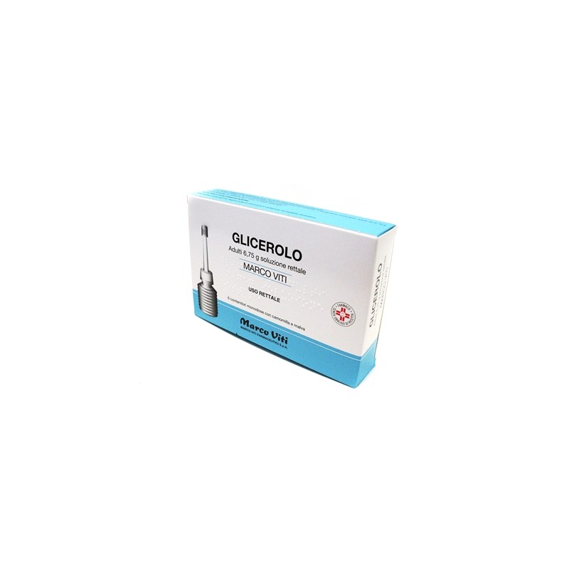 GLICEROLO MARCO VITI prima infanzia 2,25 g soluzione rettale Ogni contenitore monodose contiene: Principio attivo: Glicerolo 2,25 g GLICEROLO MARCO VITI bambini 4,5 g soluzione rettale Ogni contenitore monodose contiene: Principio attivo: Glicerolo 4,5 g GLICEROLO MARCO VITI adulti 6,75 g soluzione rettale Ogni contenitore monodose contiene: Principio attivo: Glicerolo 6,75 g Per l’elenco completo degli eccipienti vedere paragrafo 6.1.