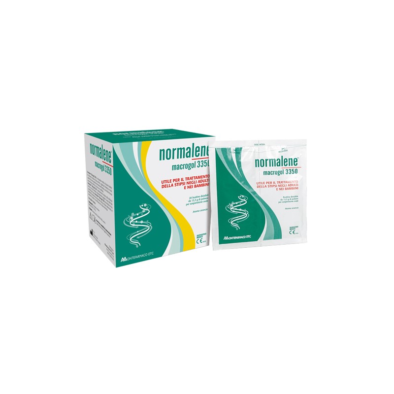 Normalene Macrogol 3350 è un dispositivo medico ad azione lassativa che, attraverso un'azione di tipo osmotico, regolarizza l'intestino in modo naturale. Non viene assorbito né fermenta nell'intestino, non irrita la mucosa e viene eliminato nelle feci in forma non modificata. Normalene Macrogol 3350 è particolarmente indicato nella stitichezza cronica e nei casi di intestino occasionalmente irregolare. Grazie infatti alla sua affinità per l'acqua, Normalene Macrogol 3350 ammorbidisce le feci facilitando l'evacuazione senza provocare crampi, né dolore addominale, né condizioni di urgenza. La sua efficacia non si riduce nel tempo.