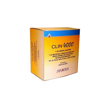 La confezione contiene 30 bustine monouso. Ogni bustina contiene 10 g di Macrogol 4000. Clin 4000 è disponibile anche nella confezione in flacone da 200 g con cucchiaio dosatore.