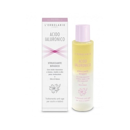 L'Erbolario Acido Ialuronico Struccante Bifasico è un trattamento struccante antiage per occhi e labbra con Acido Ialuronico a tre pesi molecolari e Olio di Ibisco. Oltre a rimuovere le impurità del trucco, crea un film protettivo sulla pelle, regolando il tasso di idratazione e favorendo la fisiologica produzione di Collagene. Oftalmologicamente testato. Non contiene profumo. Ha il 98% ingredienti di origine naturale ed è senza siliconi, parabeni e petrolati.