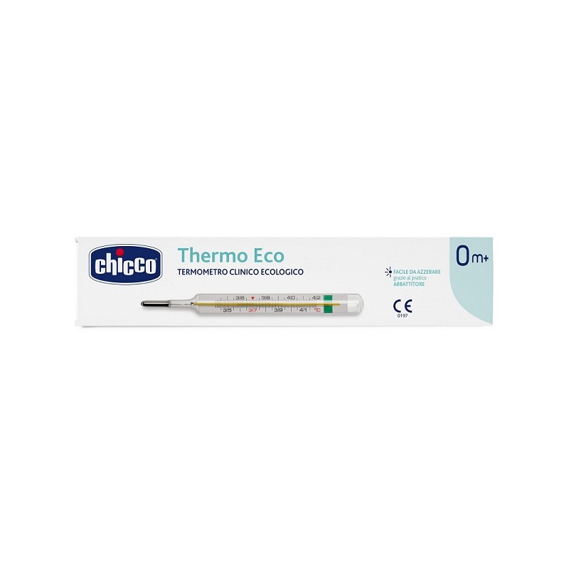 Chicco ThermoEco è un termometro clinico tradizionale in vetro progettato per misurare la temperatura corporea in modo preciso e sicuro. Utilizza una lega di gallio, indio e stagno al posto del mercurio, rendendolo una soluzione ecologica e affidabile per tutta la famiglia. }