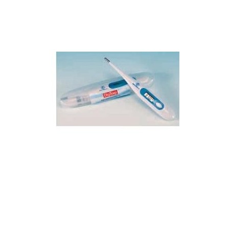 Termometro elettronico digitale con sonda rigida, in astuccio protettivo trasparente.