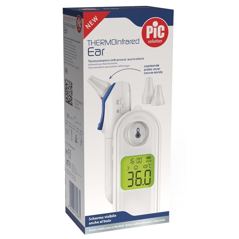 PIC ThermoInfrared Ear è un termometro auricolare a infrarossi progettato per misurare rapidamente la temperatura corporea attraverso l’orecchio. Il sistema rileva la temperatura e la converte automaticamente nel suo equivalente orale per una lettura più intuitiva e immediata.