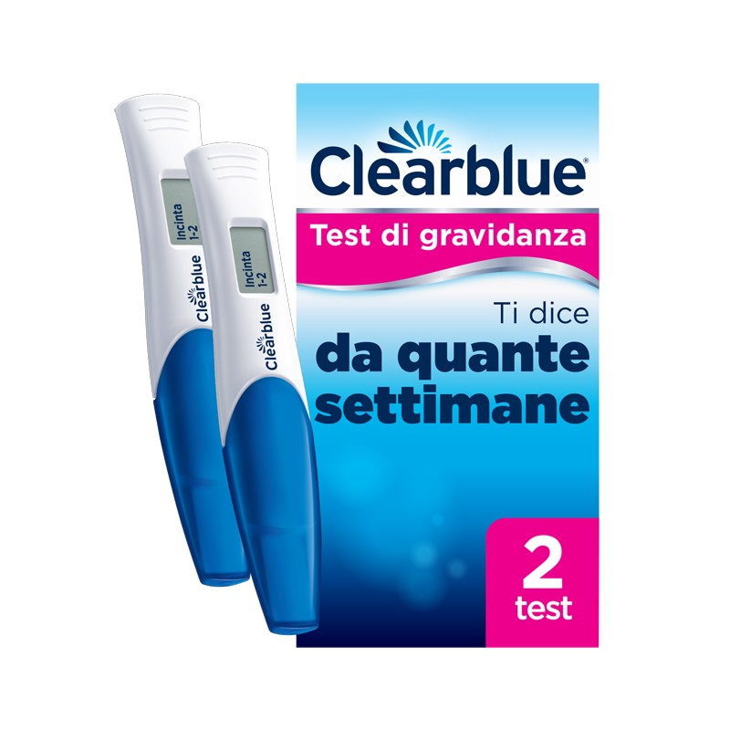 Il Test di Gravidanza Clearblue con indicatore delle settimane grazie alla sua tecnologia Smart Dual Sensor, non solo indica il risultato "Incinta" o "Non incinta", ma dice anche da quanto tempo. Prodotto da Procter & Gamble.