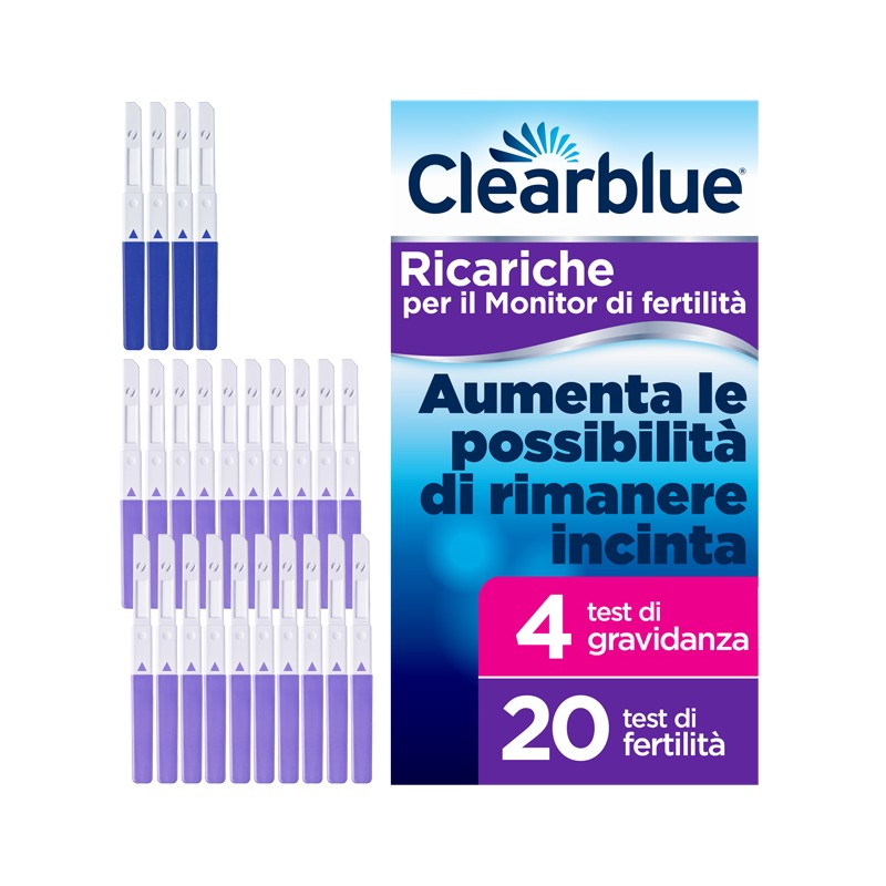 La confezione contiene 20 test di fertilità e 4 test di gravidanza.