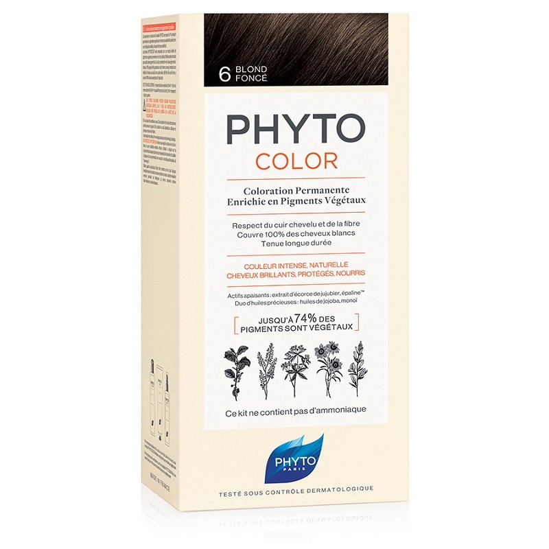 Gli esperti coloristi PHYTO creano la prima gamma di colorazione permanente a base di pigmenti vegetali senza ammoniaca, che unisce performance del colore, bellezza dei capelli e rispetto del cuoio capelluto. La formula PHYTOCOLOR è arricchita da una miscela inedita di pigmenti vegetali estratti da cinque piante tintoriali, selezionate per il loro eccezionale potere pigmentante. La loro elevata concentrazione di pigmenti vegetali, fino al 74% a seconda della nuance, garantisce un colore intenso, naturale e ricco di riflessi luminosi; agisce inoltre come booster di luminosità. Il colore non sbiadisce e copre il 100% dei capelli bianchi sin dalla prima applicazione. Un duo di oli preziosi e attivi che sublimano il colore arricchisce la formula: Monoi e Jojoba. Due oli vegetali al 100% che operano in sinergia per rigenerare e sublimare la fibra capillare. A questi si aggiungono due attivi lenitivi per una colorazione delicata.