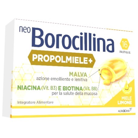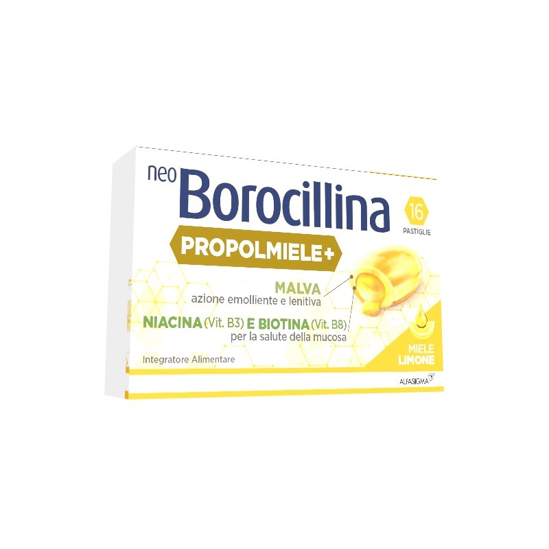 NeoBorocillina propolmiele+ è la pastiglia dal cuore liquido per il benessere della gola. Prodotto da Alfasigma.