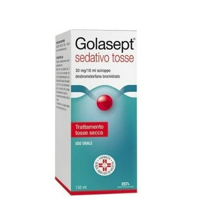 Il trattamento con destrometorfano bromidrato non deve essere protratto oltre i 5 - 7 giorni. In mancanza di una risposta terapeutica entro pochi giorni, il medico deve rivalutare la situazione. Il destrometorfano bromidrato può dare assuefazione. A seguito di un uso prolungato, i pazienti possono sviluppare tolleranza al medicinale, così come dipendenza mentale e fisica (vedere paragrafo 4.8). I pazienti con tendenza all’abuso o alla dipendenza devono assumere le gocce di destrometorfano bromidrato per brevi periodi e sotto stretto controllo del medico. Sono stati riportati casi di abuso e dipendenza da destrometorfano. Si raccomanda di prestare particolare attenzione con adolescenti e giovani adulti, nonché con pazienti con una storia di abuso di farmaci o sostanze psicoattive. Una tosse cronica può essere un sintomo precoce di asma e quindi destrometorfano bromidrato non è indicato per la soppressione della tosse cronica o persistente (es. dovuta a fumo, enfisema, asma, ecc.). Il destrometorfano bromidrato deve essere somministrato con particolare cautela e solo su consiglio medico nel caso la tosse sia accompagnata da altri sintomi quali: febbre, rash, mal di testa, nausea e vomito. Il medicinale non deve essere assunto in caso di tosse accompagnata da secrezione abbondante. In caso di tosse irritante con una notevole produzione di muco, il trattamento con destrometorfano bromidrato deve essere somministrato con particolare cautela e solo su consiglio medico dopo un’attenta valutazione del rischio-beneficio. Durante la terapia con destrometorfano bromidrato è sconsigliabile l’uso di alcol (vedere paragrafo 4.5). Somministrare con cautela e solo dopo un’attenta valutazione del rischio-beneficio destrometorfano bromidrato nei pazienti con malattie cardiovascolari, ipertensione, ipertiroidismo, diabete, glaucoma, ipertrofia prostatica, stenosi dell’apparato gastroenterico e urogenitale, epilessia, alterata funzionalità epatica, nei soggetti che stanno assumendo farmaci antidepressivi, come i farmaci inibitori della MAO. Il destrometorfano è metabolizzato dal citocromo epatico P450 2D6. L’attività di questo enzima è geneticamente determinata. Circa il 10% della popolazione metabolizza lentamente il CYP2D6. In metabolizzatori lenti e pazienti con uso concomitante di inibitori del CYP2D6 possono manifestarsi effetti esagerati e/o prolungati del destrometorfano. È necessario pertanto prestare attenzione in pazienti metabolizzatori lenti del CYP2D6 o che utilizzano inibitori del CYP2D6 (vedere anche paragrafo 4.5). Rischio dall’uso concomitante di medicinali sedativi quali benzodiazepine o medicinali correlati ad esse: L’uso concomitante di Golasept sedativo tosse 15 mg/ml gocce orali, soluzione e medicinali sedativi quali benzodiazepine o medicinali correlati ad esse può causare sedazione, depressione respiratoria, coma e morte. A causa di questi rischi, la prescrizione concomitante con questi medicinali sedativi deve essere riservata ai pazienti per i quali le opzioni di un trattamento alternativo non sono possibili. Se si decide di prescrivere Golasept sedativo tosse 15 mg/ml gocce orali, soluzione in concomitanza a medicinali sedativi, deve essere usata la dose efficace più bassa possibile e la durata del trattamento deve essere la più breve possibile. I pazienti devono essere attentamente valutati per i segni e i sintomi di depressione respiratoria e sedazione. A tale riguardo, è fortemente raccomandato di informare i pazienti e le persone che se ne prendono cura (dove applicabile) di prestare attenzione a questi sintomi (vedere paragrafo 4.5). Sindrome da serotonina: Effetti serotoninergici, incluso lo sviluppo di una sindrome da serotonina potenzialmente letale, sono stati segnalati per destrometorfano con somministrazione concomitante di agenti serotoninergici, come gli inbitori selettivi della ricaptazione della serotonina (selective serotonin reuptake inhibitors, SSRI), farmaci che alterano il metabolismo della serotonina (tra cui gli inibitori della monoammina -ossidasi [monoamine oxidase inhibitors, MAOI]) e gli inibitori del CYP2D6. La sindrome da serotonina può includere variazioni dello stato mentale, instabilità autonomica, anomalie neuromuscolari e/o sintomi gastrointestinali. Qualora si sospetti una sindrome da serotonina, il trattamento con Golasept Sedativo Tosse dovrà essere interrotto. Informazioni importanti su alcuni eccipienti: Questo medicinale contiene piccole quantità di etanolo (alcol etilico), in quantità inferiore a 100 mg per dose massima giornaliera. Questo medicinale contiene 67,5 mg di sorbitolo per dose di 10 mg equivalente a 27 gocce e 540 mg per dose massima giornaliera. L'effetto additivo della co-somministrazione di medicinali contenenti sorbitolo (o fruttosio) e l'assunzione giornaliera di sorbitolo (o fruttosio) con la dieta deve essere considerato. Il contenuto di sorbitolo in medicinali per uso orale può modificare la biodisponibilità di altri medicinali per uso orale co-somministrati. Ai pazienti con intolleranza ereditaria al fruttosio non deve essere somministrato questo medicinale. Questo medicinale contiene 2,15 mg di sodio benzoato per dose di 10 mg equivalente a 27 gocce e 17,2 mg per dose massima giornaliera Questo medicinale contiene 0,16 mg di propilene glicole per dose di 10 mg equivalente a 27 gocce e 1,28 mg per dose massima giornaliera. Questo medicinale contiene paraidrossibenzoati: possono causare reazioni allergiche (anche ritardate). Questo medicinale contiene meno di 1 mmol (23 mg) di sodio per dose massima giornaliera, cioè essenzialmente‘senza sodio’.