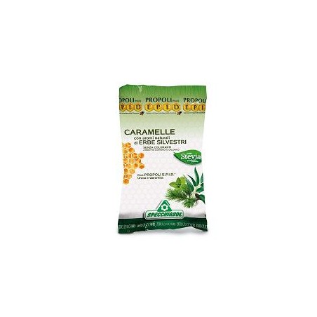Caramelle alle erbe silvestri con estratto di propoli E.P.I.D. Utili per il sollievo della gola. Ipocaloriche e senza zucchero dolcificate con stevia.