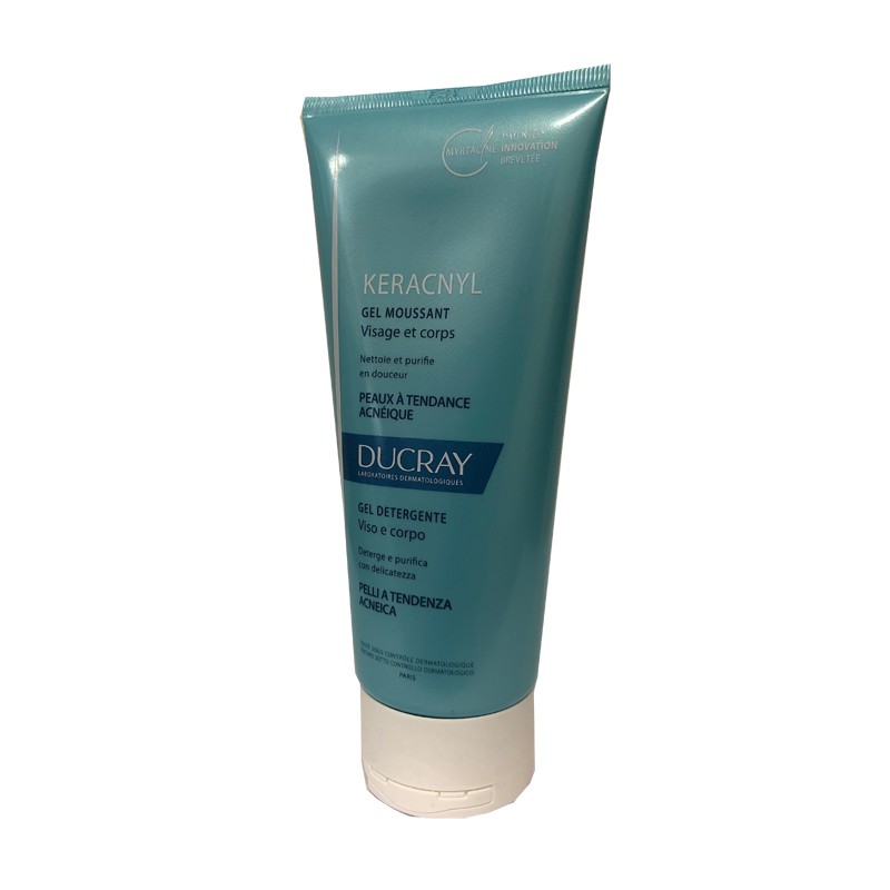 Ducray Keracnyl è un gel detergente viso e corpo, deterge e purifica con delicatezza e previene la secchezza e la disidratazione. Prodotto da Ducray.