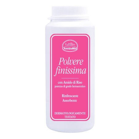 Euphidra Amidomio in polvere, lenisce gli arrossamenti, previene le irritazioni e mantiene la pelle asciutta e morbida, senza ostacolare la normale traspirazione cutanea.