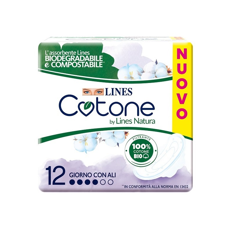 Tutti i prodotti della gamma Lines Cotone Bio contengono vero cotone biologico nel filtrante, fibra naturale e compatibile con il pH fisiologico della pelle e sono rivolti a donne che cercano un materiale naturale a contatto con la pelle.